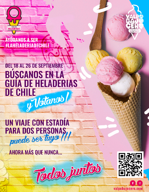 Del 18 al 26 de septiembre, la tercera edición del festival de heladerías Valpo Bajo Cero trae grandes sorpresas, en las que los fanáticos del helado serán los protagonistas: votarán por las mejores heladerías de cada región en www.valpobajocero.com, accederán a increíbles promociones y sorteos en la más de 60 heladerías adheridas de Arica a Magallanes y participarán