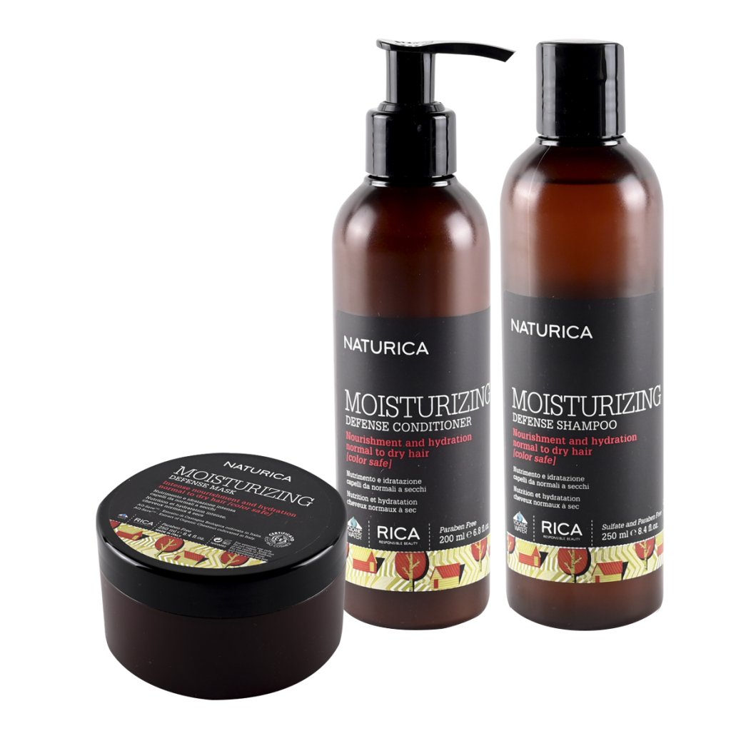 Moinsturizing Defense. Para cabellos normales a secos que requieren nutrición e hidratación. Shampoo con extractos de morera negra y uva; Acondicionador con vitaminas E y B5, y Máscara enriquecida con vitaminas, proteínas y extracto de uva.