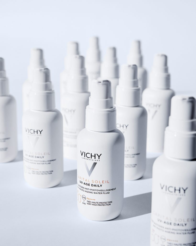El último lanzamiento de esta línea, UV-Age Daily Anti foto-envejecimiento, brinda protección avanzada contra los rayos UVA y UVB, mientras actúa sobre signos como arrugas y manchas, por su fórmula enriquecida con péptidos y niacinamida. Se trata de un protector solar diario para el rostro, cuello, escote y manos que provee una muy alta protección UVB, UVA cortos, UVA largos y protección contra la contaminación con un FPS 50+. Es apto para todo tipo de piel, incluso aquellas sensibles, es hipoalergénico y de textura fluida ultraligera.