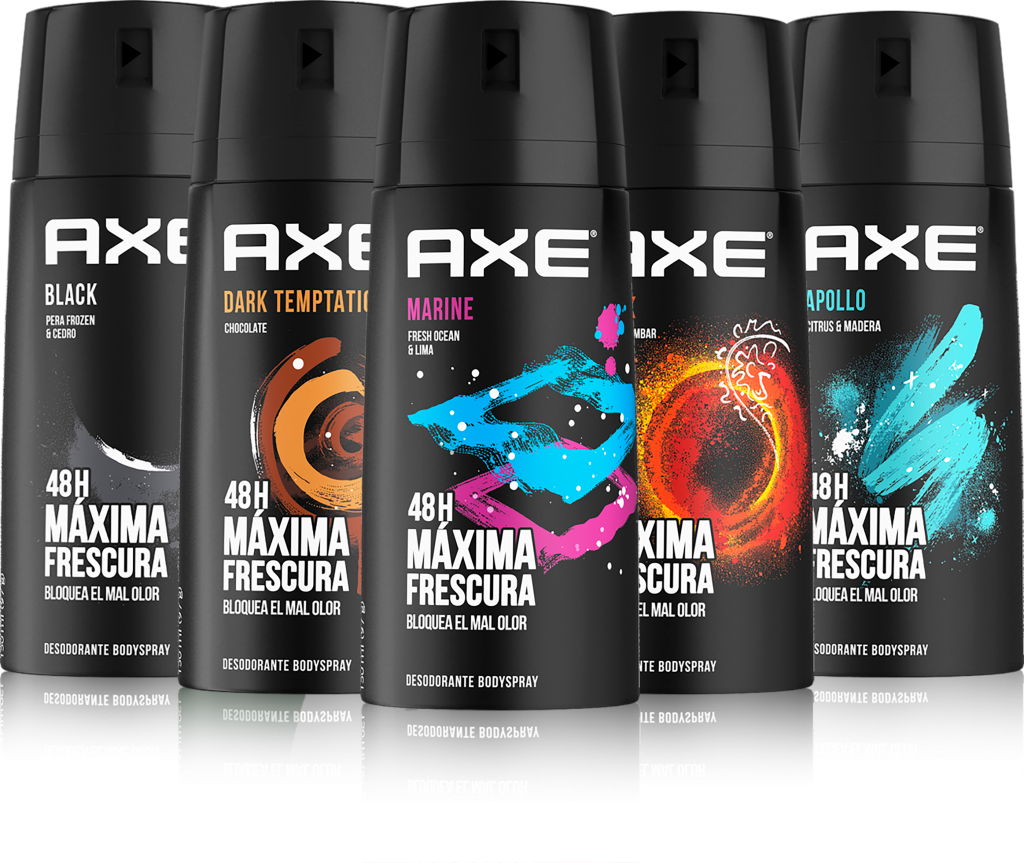 La marca presenta su completo portafolio de diez fragancias a través de sus seis body sprays (Dark Temptation, Apollo, Marine, Musk, Freestyle y Black) y cuatro antitranspirantes (Dark Temptation, Apollo, Freestyle y Black) para que el consumidor pueda complementar su rutina de cuidado personal.
