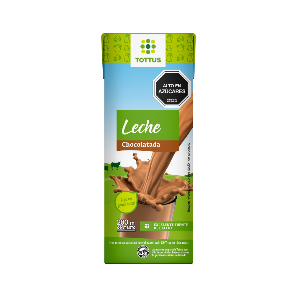 Tottus lanzó una nueva versión de su línea de leches líquidas, ahora con una con sabor chocolate, la cual estará disponible en formato individual de 200 ml y six pack. Este producto es excelente fuente de calcio, bajo en grasa total, hecho con cacao en polvo, cuenta con una bombilla de papel biodegradable y sin edulcorantes artificiales, lo que la hace perfecta para un desayuno o colación nutritiva y natural.