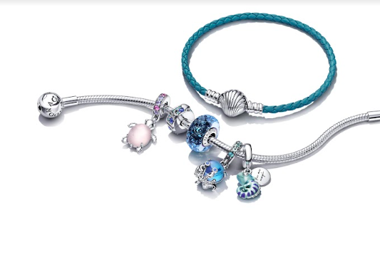 Los nuevos charms inspirados en el océano cuentan con vibrantes detalles de cristal de Murano.