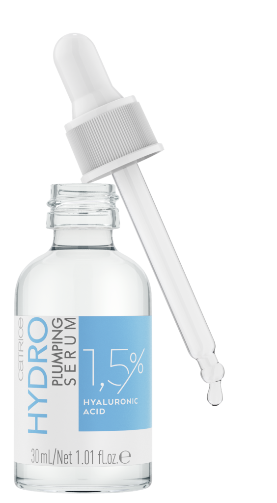 Para mantener una piel hidratada recomendamos el HYDRO PLUMPING SERUM de CATRICE que proporciona un aspecto fresco y resplandeciente en segundos. Con un 1.5% de ácido hialurónico que hidrata y rellena visiblemente tu piel, mientras le brinda un efecto calmante. Aplica dos gotas en la cara limpia por la mañana y la noche y masajea suavemente en la piel. Tendrás una sensación agradable en la piel y una tez fresca y de aspecto saludable.