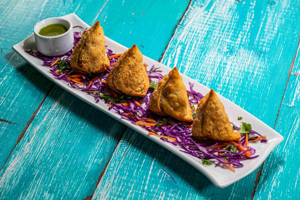 La opción perfecta a la tradicional empanada de pino, son las Samosas. Deliciosas empanadillas de fina masa con comino rellenas de papas y verduras con especias indias.