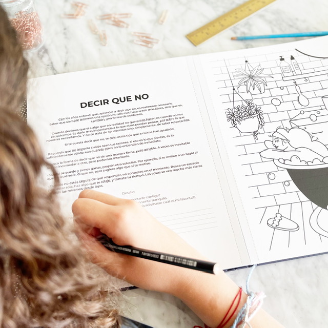 El libro incluye 20 ilustraciones para colorear en donde cada una representa una escena distinta que viene acompañada de un texto inspirador y un desafío para completar, con los que te invito a realizar un hermoso viaje a tu propio encuentro, a revisar cómo te tratas, y a reparar y fortalecer la relación que tienes contigo.