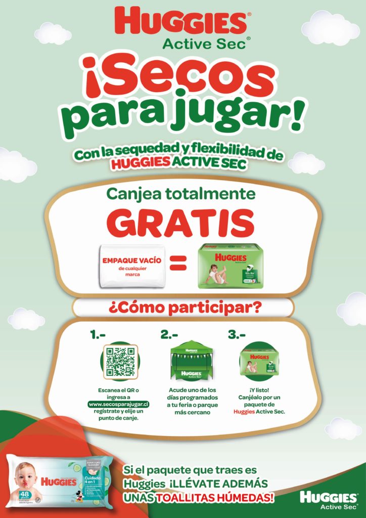 La iniciativa consiste en que cada persona que se acerque con una bolsa vacía, de cualquier marca de pañales, a uno de los stands de Huggies que se dispondrán para esto, podrá obtener a cambio un paquete nuevo de la línea Active Sec.