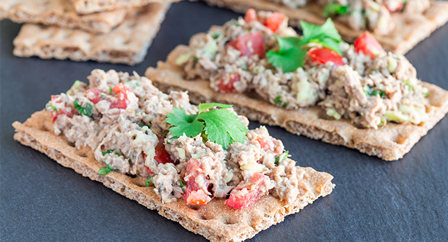 1. Atún y galletas A muchos los niños no les gusta el pescado, pero sí comen atún. Como todos los pescados, el atún es una excelente fuente de ácidos grasos omega 3 y es rico en proteína. Intenta combinar atún de lata con palta molida, en lugar de mayonesa y sírvela con galletas integrales. A los niños les encantará preparar sus propios sándwiches con galletitas.