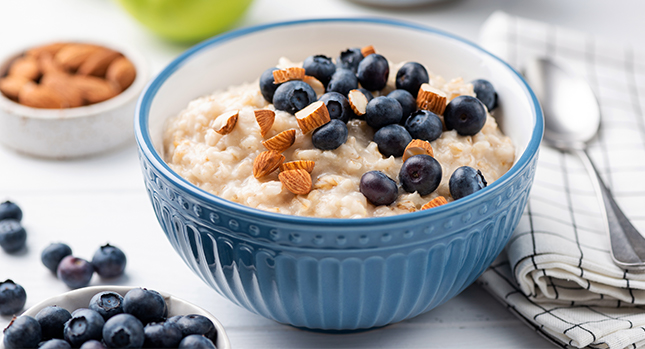 4. Avena La avena es rica en fibra y vitamina B, y cocerla toma tan solo unos minutos. Intenta prepararla con leche descremada o de soya, en lugar de agua, para obtener calcio y proteína extra. Puedes endulzarla ligeramente y añadir trozos de fruta como plátano o manzana.