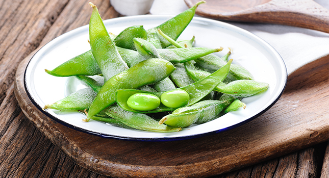 11. Edamames Coloca 1 taza de soya edamame congelada (en la vaina) en agua hirviendo durante unos minutos. Espolvorea con un poco de sal o salsa de soya. Son una gran fuente de proteína a base de plantas y son divertidos de comer.