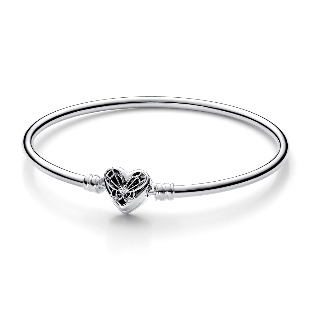 El Sparkling Infinity Heart Clasp Snake Chain Bracelet mantiene el sello distintivo de Pandora con su cadena de serpiente, pero con un broche único que pone en relieve un detallado corazón calado y entrelazado con un símbolo de infinito para representar el amor eterno de las madres.