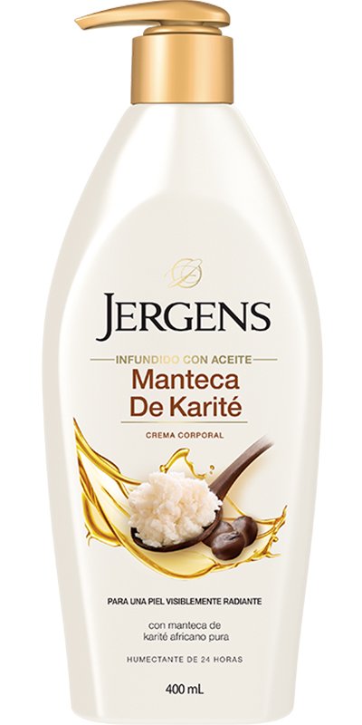Para ayudarte a revertir esta situación, los expertos de la marca Jergens® desarrollaron su exclusiva crema corporal de Manteca de Karité, loción que, gracias a la mezcla resplandeciente de Hydralucence® y manteca de karité africano puro, facilita la restauración de la luminosidad de la piel e intensifica su brillo, llevándola a otro nivel de hidratación.