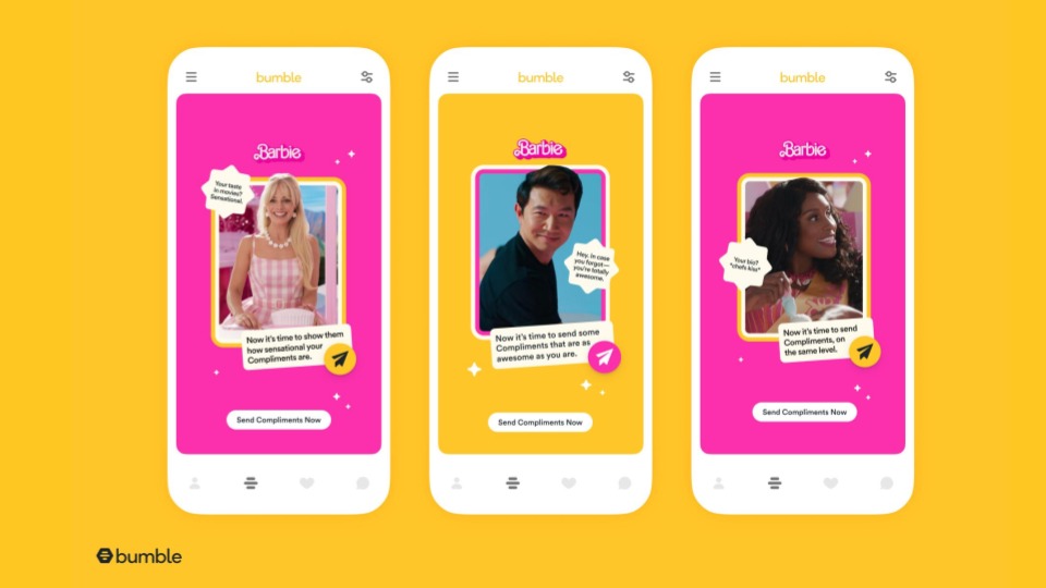 Ahora, las personas en Bumble pueden hacer match con los mayores animadores de los solteros: las numerosas Barbies y Kens de la altamente esperada cinta, para recibir mensajes motivadores mientras navegan en su vida amorosa. Los mensajes divertidos y genuinos están diseñados para inspirar la amabilidad en la comunidad de Bumble, porque ¿qué mejor manera de tener, en palabras de Barbie, “el mejor día de la vida” que construyendo una conexión positiva y significativa con alguien? La nueva experiencia resalta Cumplidos, una función de mensaje previo al match que ayuda a las personas en Bumble a ser aún más intencionales al iniciar conversaciones de manera amable y positiva.