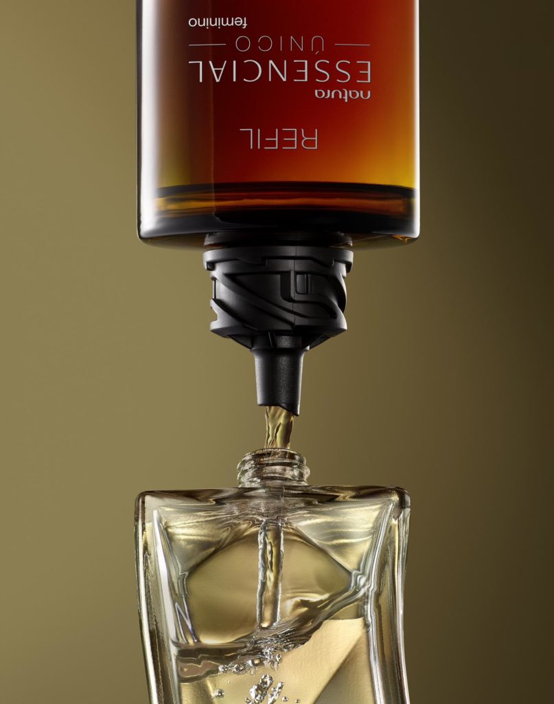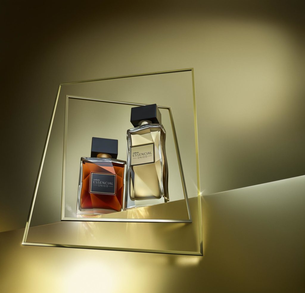 Con Essencial Único, la sustentabilidad es una convicción y una responsabilidad. Por ello, se destaca su empaque con acabado extraordinario, su botella multifacética que revela el color de estas poderosas fragancias, desarrolladas con vidrio reciclado y alcohol orgánico minimizando así el impacto ambiental.