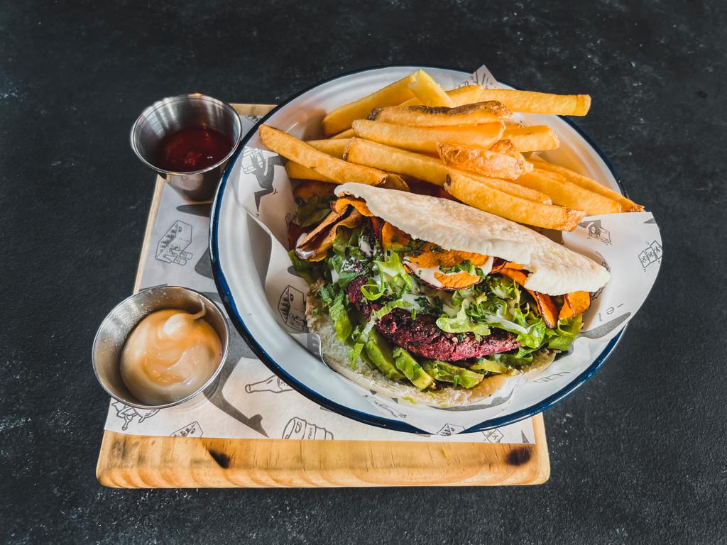 Sin duda, uno de los mayores éxitos en el mundo de la comida vegetariana son las hamburguesas veggies. Estos platos elaborados a partir de ingredientes como lentejas, garbanzos, champiñones y quinoa, han conquistado el paladar de los vegetarianos, incluso a los amantes de la carne. Así es la “Fricanveggie” de KrossBar, se trata de una hamburquesa de quinoa con porotos negros y beterraga, lechuga, palta, crocante de camote y salsa mayogurt al ciboulette. Todo preparado en pan pita. Valor: