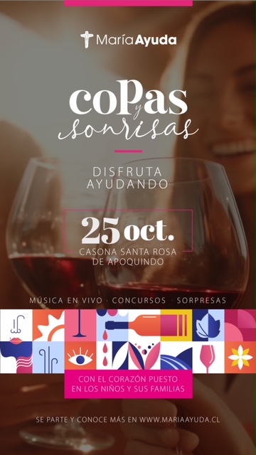 Si quieres pasar una tarde entretenida, con buena música en vivo, los mejores vinos de Chile y la oportunidad de ganar increíbles premios, esta invitación calza perfecto para ti y tus amigos. Agenda ya el próximo miércoles 25 de octubre porque ese día a las 19:30 hrs, se llevará a cabo el evento Copas y Sonrisas (Centro Cultural Santa Rosa de Apoquindo), organizado por María Ayuda con el objetivo de recaudar fondos para el cuidado de los niños, niñas y adolescentes en situación de vulnerabilidad y que la Corporación acoge en sus diez residencias a lo largo del país.