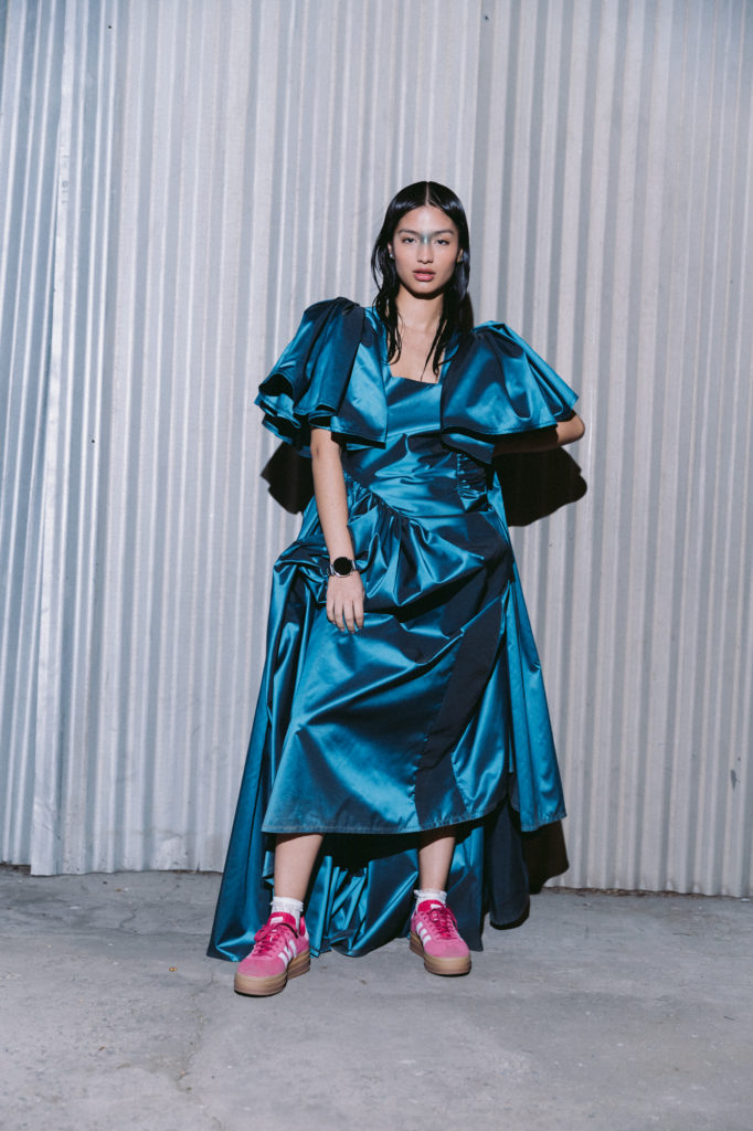 Un detalle importante de esta colección es que además de usar telas fabricadas localmente, hay elementos usados en la confección como tiradores de piezas de orfebrería en bronce fabricados por el padre de Marín. Adicionalmente y para fusionar aún más los conceptos de lifestyle y moda deportiva, los modelos vistieron calzado entregado por adidas Originals Chile, especificamente los tan demandados sneakers Gazelle y Samba, cerrando el 360° de los looks. No es de extrañar que por eso sea una colección tan auténtica, una combinación de colaboraciones entre diseño local, tecnología y lifestyle de talla mundial.