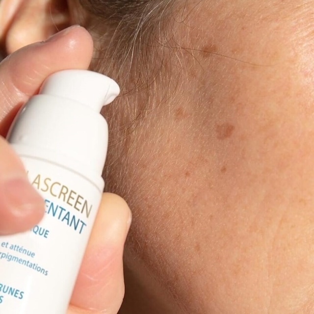 Melascreen Fluido protector photo-aging SPF50+: Fluido anti-edad y anti-manchas de uso diario con muy alta protección que previene y reduce la aparición de manchas marrones, al mismo tiempo que protege la piel contra los UVB, los rayos UVA cortos y largos, la luz azul y los efectos nocivos de la contaminación. Tiene una doble eficacia contra las manchas oscuras y el envejecimiento de la piel: El ácido Azelaico activo probado clínicamente para reducir las manchas oscuras.