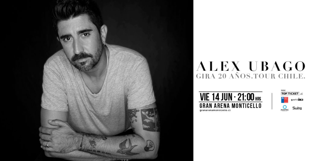 Después de agotar sus shows de noviembre pasado, Álex Ubago regresa a Chile con la “Gira 20 Años Tour” y se presentará en Gran Arena Monticello el próximo viernes 14 de junio desde las 21.00 horas. Las entradas para la presentación estarán disponibles desde el jueves 21 de marzo a las 15.00 por el sistema Topticket.