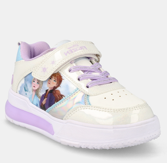 - Zapatilla Luces Frozen Blanco-Aqua: con los personajes de Elsa y Anna, estas zapatillas de ensueño llegan con la magia de Frozen, con luces que brillan en cada paso.