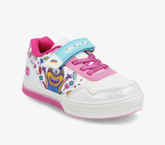 - Zapatilla Minions Neon Blanco-Fucsia: estas zapatillas de la colección Minions no solo son llamativas sino también cómodas, ideales para el día a día u otras aventuras. ¿Lo mejor? Cuentan con el atributo favorito de los niñ@s: ¡Luces!