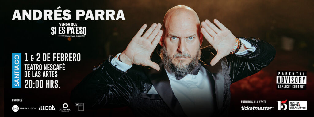 El talentoso actor colombiano Andrés Parra, conocido por sus inolvidables interpretaciones en cine, teatro y televisión, regresa a Chile para presentar una nueva faceta de su carrera: el stand-up comedy. Con su espectáculo “Venga que sí es pa’ eso”, Parra promete dos noches inolvidables llenas de humor, reflexión y conexión con el público, el 1 y 2 de febrero en el Teatro Nescafé de las Artes.