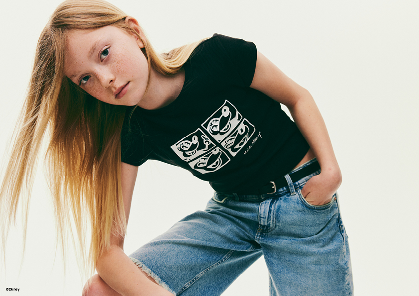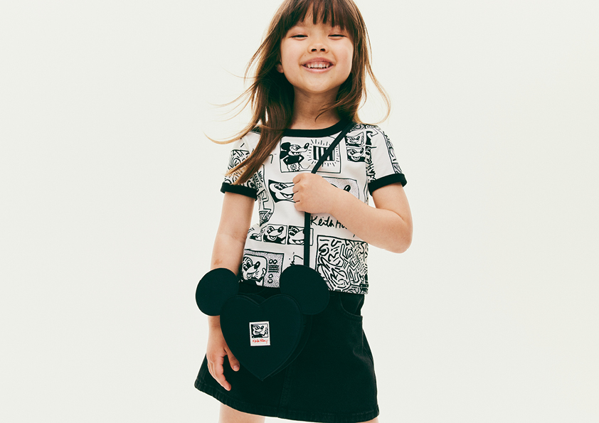 H&M presenta su nueva colección infantil, inspirada en las clásicas interpretaciones del artista estadounidense Keith Haring del emblemático personaje de Disney. La línea incluye ropa y accesorios con estampados y collages en tonos rojo, blanco, negro y un azul denim claro. Con un estilo urbano, la colección ofrece casacas de béisbol y de mezclilla, camisas tipo polo y jardineras, fusionando arte y moda en siluetas amplias y modernas que se convertirán en las prendas favoritas de los más pequeños para el verano de 2025.