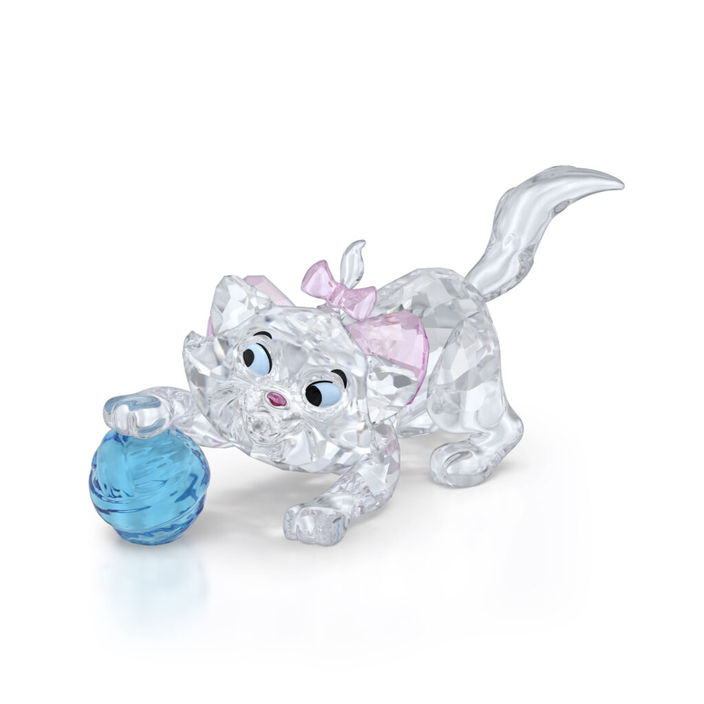 Soñadora y curiosa, la gatita blanca de Los Aristogatos cobra vida en 703 detalles brillantes que reflejan la luz desde todos los ángulos. Un delicado lazo rosa claro añade un toque de elegancia, mientras que un ovillo de lana azul vibrante refleja su lado más juguetón.
