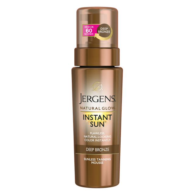 El mousse autobronceador Jergens® Instant Sun se presenta en dos versiones, light bronce para pieles claras y deep bronce para las más morenas.
