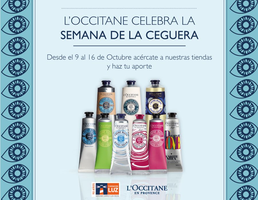 L’Occitane está comprometida con el apoyo a la Fundación Luz, una organización encargada de la reinserción laboral y social de personas con discapacidad visual. Durante la semana del 9 al 15 de octubre, la marca donará el 10% de todas las ventas de las cremas de mano de Karité en apoyo de esta fundación.