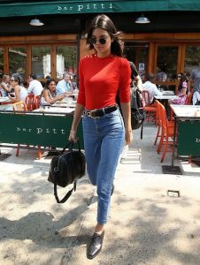 La famosa modelo Kendall Jenner e integrante del excéntrico clan Kardashian no deja su pantalón favorito. ¿Quieres saber cuál es? Se trata del mom jeans, los cuales deben su nombre porque son iguales a los que usaban las mamás en los años 80: rígidos y de tiro altísimo. Para ser sincera, no es un modelo muy favorecedor (muchas bloggers y youtubers lo reconocen), pero son bastante cómodos y tienen un aire relajado, lo que los hace muy apetecible por las fashionistas.