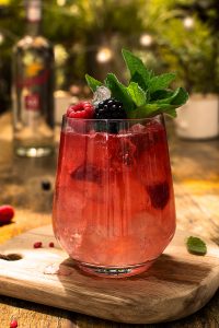 ● Incorporar todos los ingredientes en el vaso, dejando para el final la bebida burbujeante.