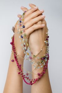 exclusiva por la hija mayor de la familia, Francisca Mery Satt, centrada en la combinación de piedra naturales de rubíes, zafiros y esmeraldas.