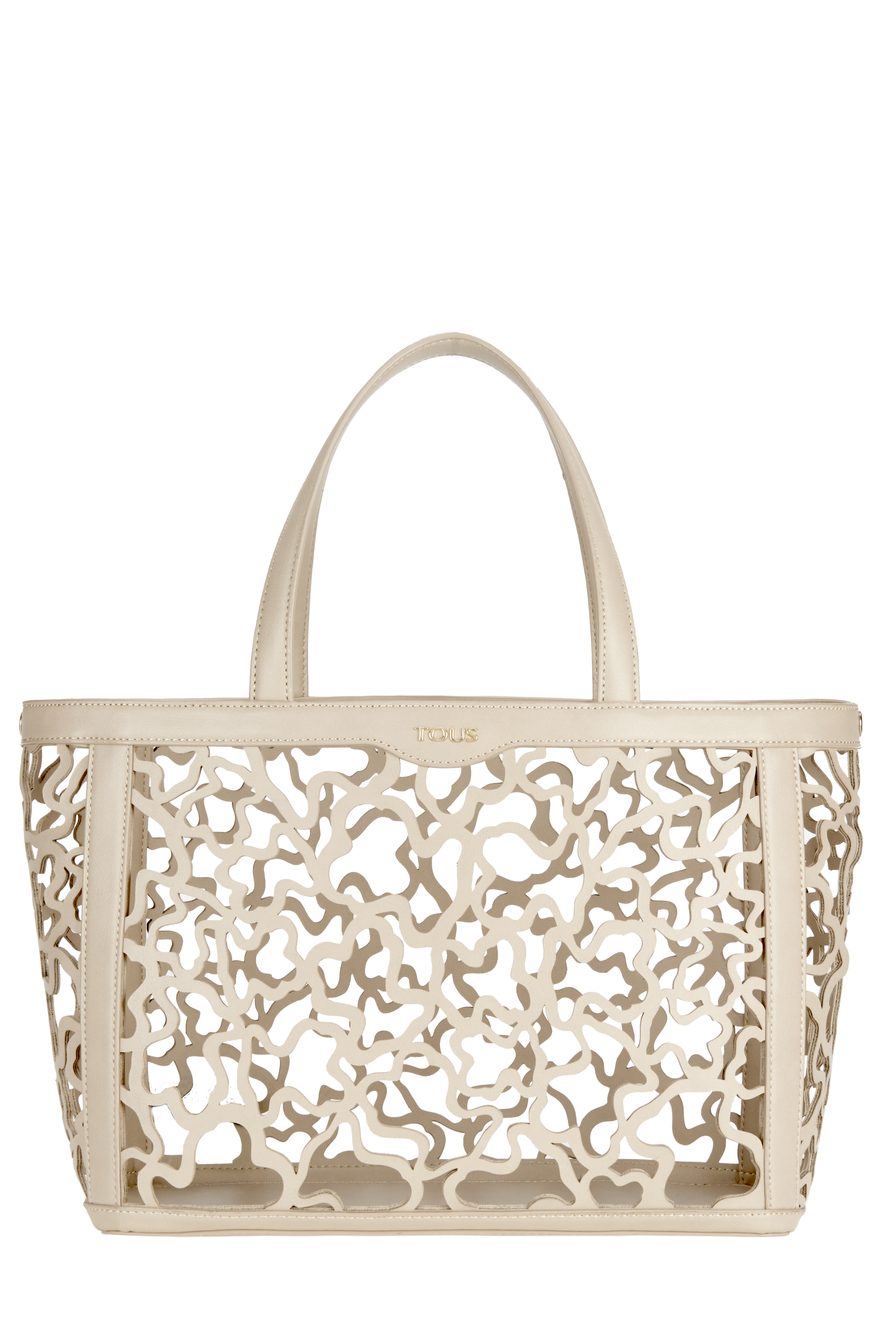 Este modelo se caracteriza por su elaborado exterior en cuero con recortes láser, un detalle que a simple vista ofrece un elegante juego de texturas y colores. La rejilla, inspirada en la silueta del oso TOUS, sirve de soporte para cambiar el color de fondo con distintas y entretenidas fundas intercambiables que puedes adquirir en diferentes colores para combinar con tus looks.