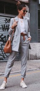 5. Con pantalones príncipe de gales o grises para un look de oficina: