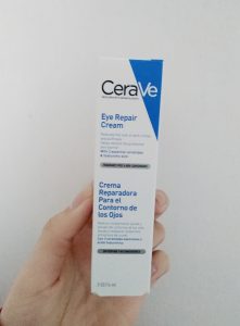 Respecto a la crema para el contorno de ojos, es ideal para mi porque me preocupo mucho de las lineas de expresión de esa zona y siempre estoy tratando de aplicar algún producto (incluso he leído que un poquito de aceite de oliva en las llamadas “patas de gallo” es súper eficaz). Por su parte, esta crema dice que sirve para disminuir el efecto oscuro de las ojeras, yo no tengo muchas ojeras pero hasta el momento me ha encantado su textura y el hecho de que tenga ácido hialurónico.