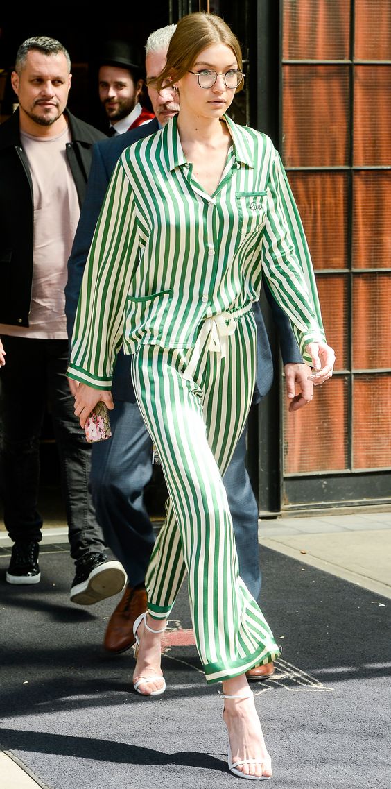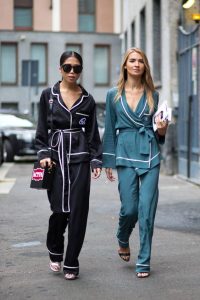 El uso de pijamas en la calle se caracteriza por estampados o colores sobrios que juegan con la creatividad y preferencias de cada persona. La tela que utilizan es principalmente seda o satín, con el fin de darle fluidez y movimiento a la prenda, generando así su comodidad. Son pijamas con corte masculino, camisas abotonadas con bolsillos, kimonos y jumpsuits; los nuevos must have dentro del closet de una mujer.