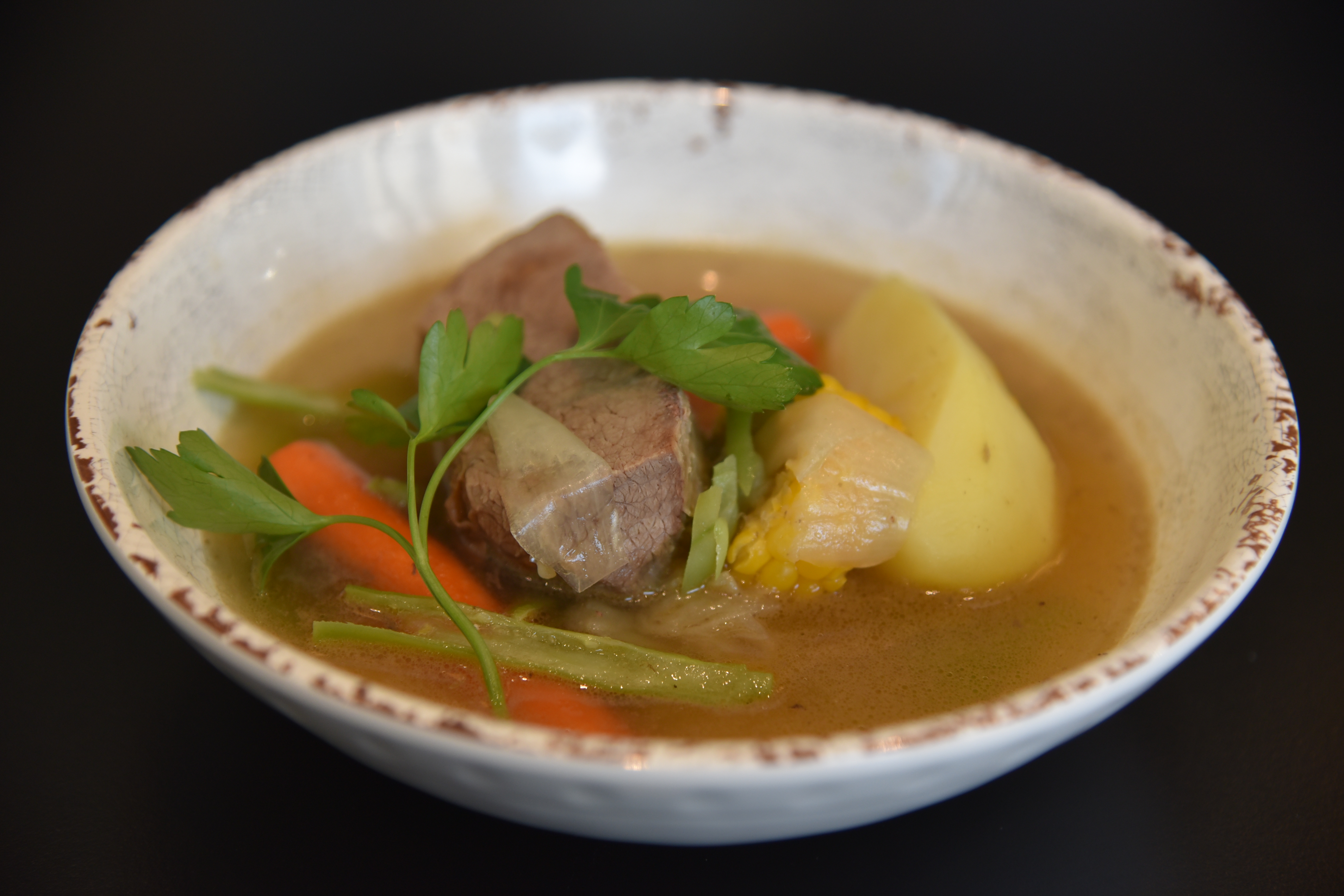 ● Cazuela de Vacuno: carne de vacuno, cilantro, zapallo, porotos verdes y papas.