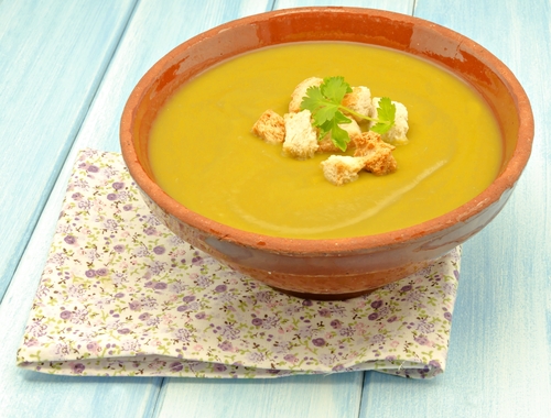 ● Crema de zapallo: zapallo, ajo, caldo de verduras, cebolla y crutones al orégano.