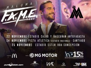 El guapo colombiano se ha transformado en uno de los artistas más importantes de la música latina y un referente del género urbano. Aún recordamos su visita al Festival de Viña el año pasado porque enloqueció a sus fanáticas que lo seguían a todos lados. El artista se presenta en nuestro país en el marco del lanzamiento de su tercer álbum de estudio F.A.M.E. Para adquirir entradas entra aquí.