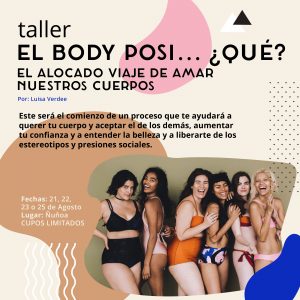 El taller “El Body Posi… ¿qué?” trata de hacernos entrar en real conciencia acerca de nuestra relación con el cuerpo, tanto con el nuestro como con el de los demás. Generalmente, la imagen corporal tiene como punto de comparación las características físicas ideales que difunden los medios de comunicación, las cuales están muy alejadas de la