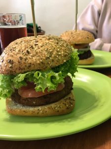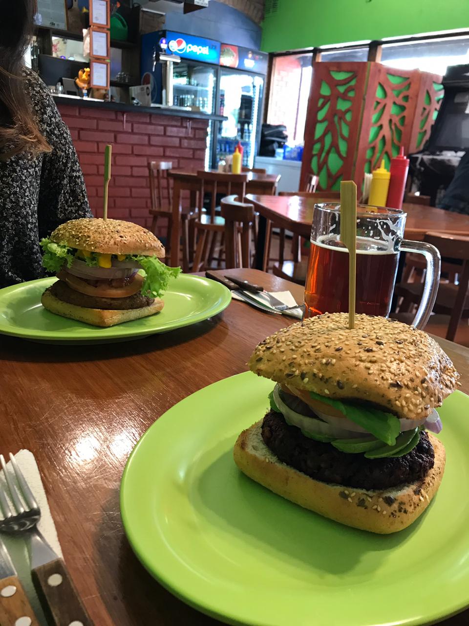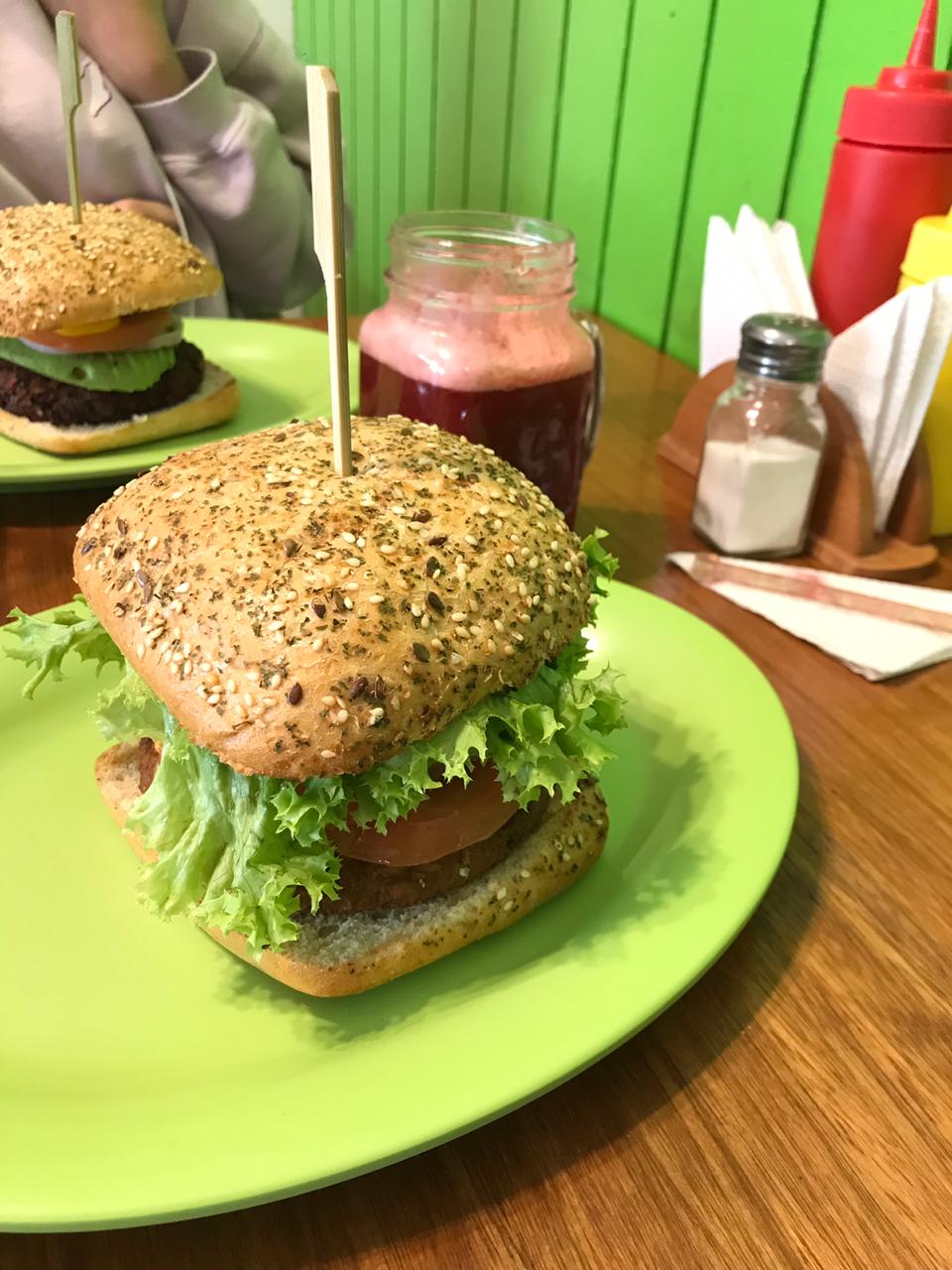 Mi amiga pidió un Manatí Estiloso ($5.100) que contiene una hamburguesa de betarraga y poroto negro, palta, rúcula, cebolla morada tomate y mayonesa o veganesa. Debo confesar que no soy fan de la betarraga, mientras pueda evitarla lo hago, pero me atreví a probar la hamburguesa de mi amiga y casi me arrepiento de no haberla pedido, tenía sabor a betarraga sí, pero también a poroto y la mezcla era única, al igual que mi hamburguesa estaba muy bien sazonada y creo que eso marcó la diferencia.