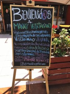 El martes pasado estaba paseando con mi amiga por Ñuñoa, eran cerca de las tres de la tarde y no habíamos almorzado aun, le comenté que había visto en Instagram un lugar donde vendían comida vegetariana que quedaba por el sector, así que buscamos la dirección en Google Maps y dimos con el “Manatí Vegetariano”, una sanguchería vegetariana y vegana ubicada en José Pedro Alessandri 97, a unas pocas cuadras del Portal Ñuñoa, encontrarla fue fácil, está ubicada en una esquina con un enorme encabezado de madera que tiene el nombre “Manatí” afuera figuran seis mesas perfectamente ubicadas al aire libre con toldos que protegen del sol, ¿qué mejor?