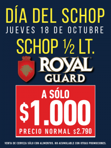 En marco de esta celebración, SCHOPDOG tendrá una espectacular e inédita promoción, SCHOP ROYAL GUARD de medio litro a tan sólo $1.000, además de otras que estarán vigentes en todos sus locales a lo largo del país durante todo el mes de octubre.