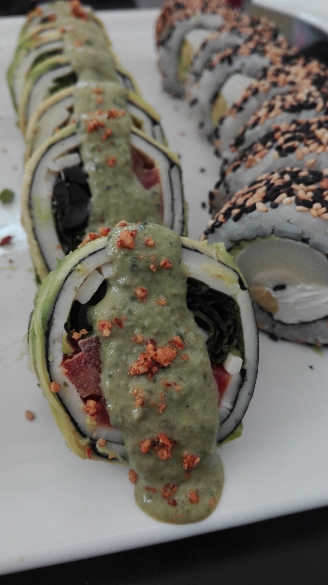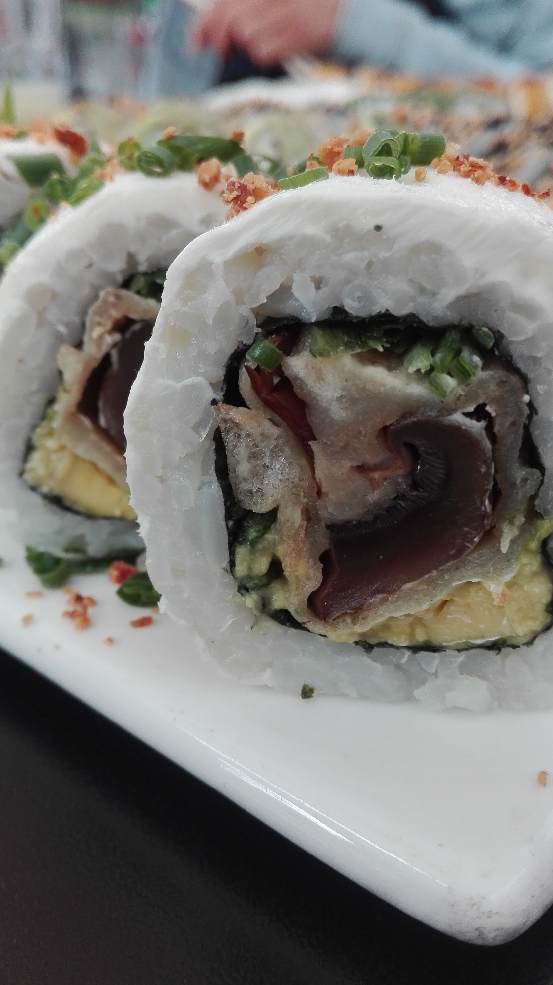 La carta tiene una sección especial de sushi vegetariano y un par de hand rolls sin carne y veganos, mi favorito es el hand roll de champiñón es ¡delicioso!