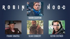 En el cine, los Robin Hoods han sido innumerables: Douglas Fairbanks fue un Robin Hood silencioso; Errol Flynn fue un Robin Hood aventurero; Margaret Rutherford fue la primera Robin mujer; Frank Sinatra fue un Robin gángster; Sean Connery fue un Robin romántico; Kevin Costner fue un Robin astuto y John Cleese y CLary Elwes fueron ambos un Robin cómico- por nombrar algunos.