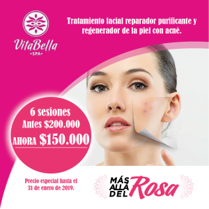 Además, les estaremos contando sobre los otros tratamientos de Vita Bella Spa y tenemos un gran descuento para todas nuestras lectoras que quieren realizar el facial reparador purificante y regenerador para pieles con acné de seis sesiones. Sólo debes escribir a Vita bella por Instagram para agendar hora y comentarles que leíste esta nota y deseas acceder al precio especial de $150.000 de Más Allá del Rosa.