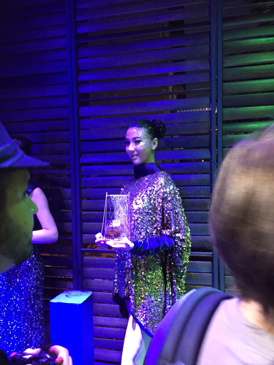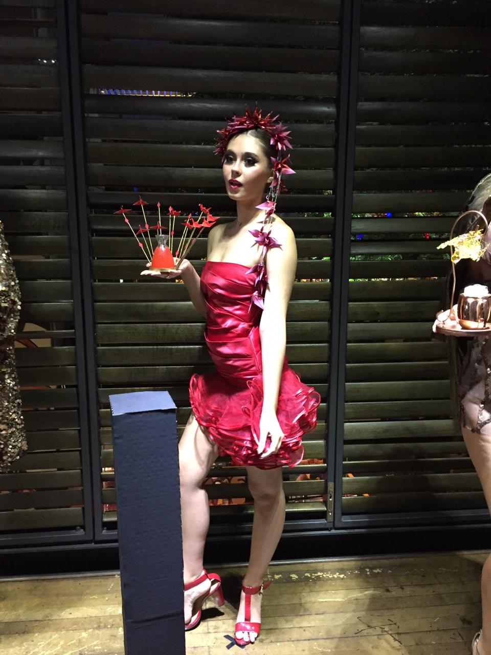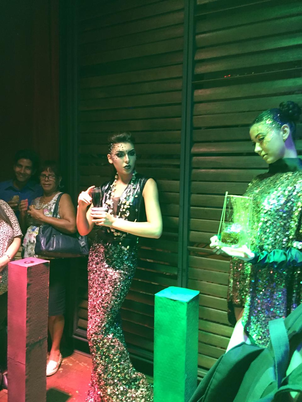 Por primera vez Nicanor Bravo, prestigioso diseñador de vestuario y José Álvarez, destacado mixólogo del Red Luxury Bar del hotel, que ha sido elegido como el mejor de Chile ofreciendo cócteles de autor, usando una selección de más 1.000 etiquetas diferentes, se asociaron para mostrar sus originales propuestas artísticas.