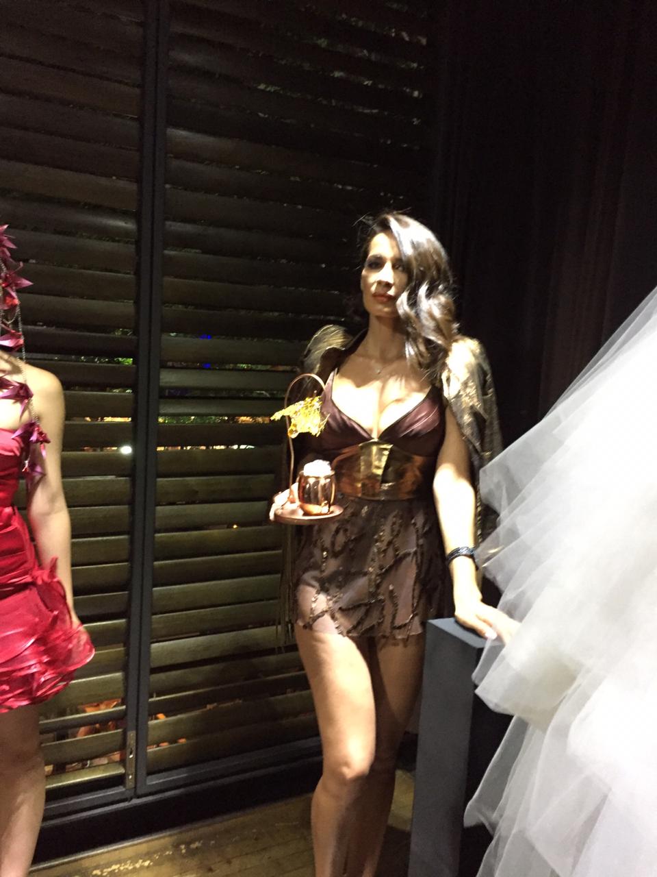 Nicanor mostró una exclusiva colección de siete vestidos inspirados en igual número de cócteles de autor que desarrolló José especialmente para el bar de este hotel de Patio Bellavista.