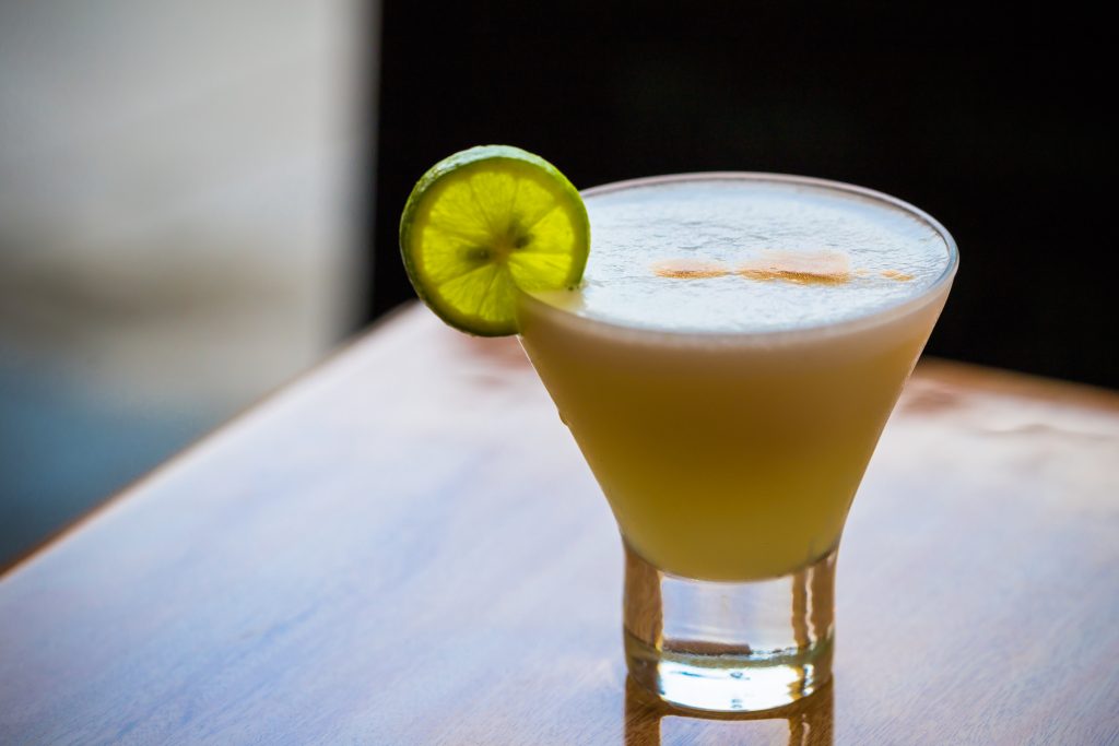 Lima, Peru – August 16, 2017: Glass of Pisco Sour in the city of Lima, Peru