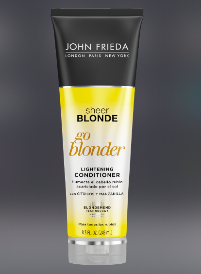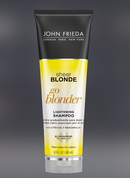 Tu cabello puede tener dos tonos más claros y reflejar así la luz del sol de verano. ¿Sabes cómo? Con John Frieda® Sheer Blonde Go Blonder Lightening Shampoo deposita gradualmente tonos amarillos para crear tonalidades de aspecto más rubio. El complejo aclarador natural aclara delicadamente el cabello y es tan suave que puede usarse todos los días. No contiene amoníaco ni peróxido. Incorpóralo suavemente en el cabello húmedo, forma espuma, enjuaga bien.